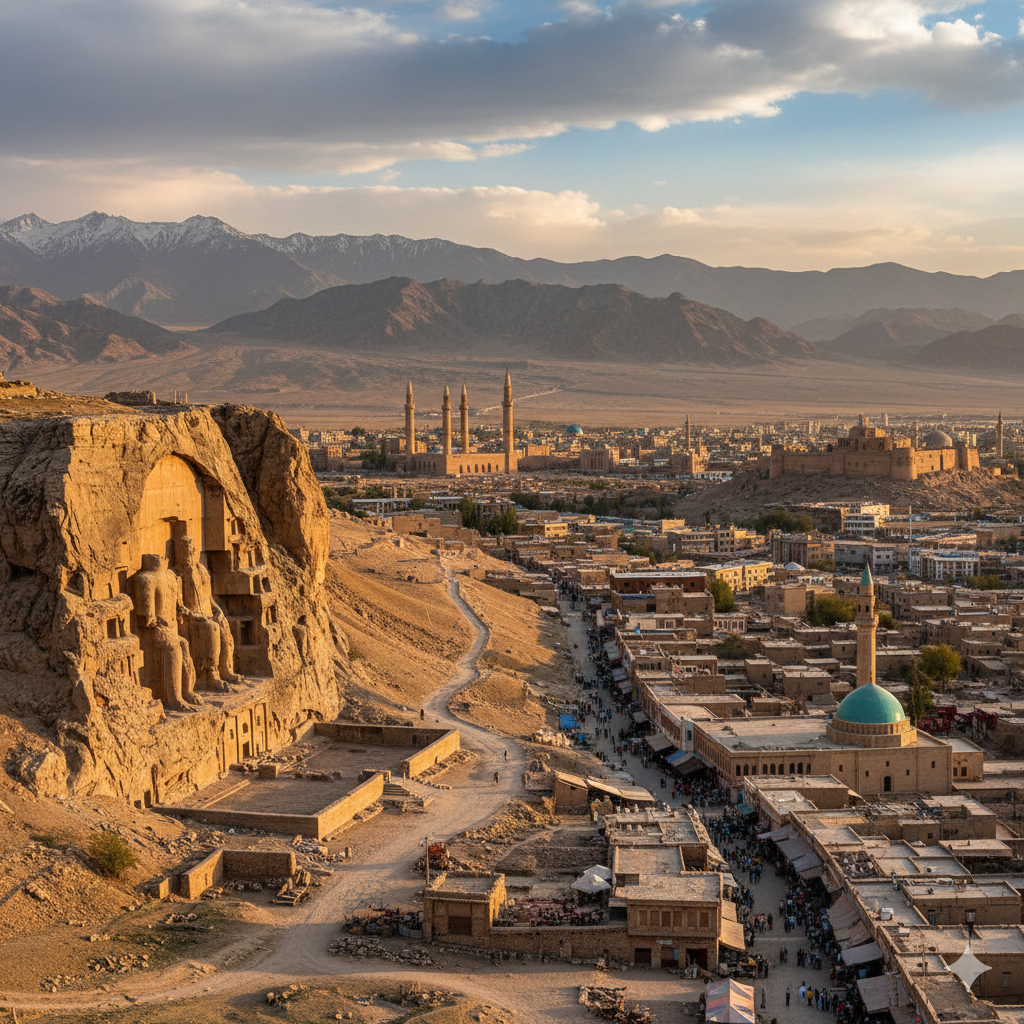 詩人ルーミーの生誕地でもあり、神秘主義文学の源流ともなっています。現在でも古い城壁の一部や歴史的建造物の遺跡を見ることができ、往時の栄華を偲ぶことができます。青いタイルで装飾されたハズラテ・アリー廟は、美しいイスラム建築の傑作として多くの巡礼者を集めています。